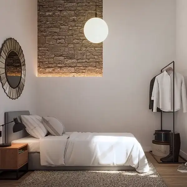 Los apartamentos orientados a Carrer del Hostal de Sant Antoni tienen cocina abierta, comedor y sala de estar, dos dormitorios, un baño y grandes ventanas. Tienen acceso a la terraza comunitaria de la azotea y a los servicios de la planta baja.