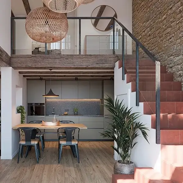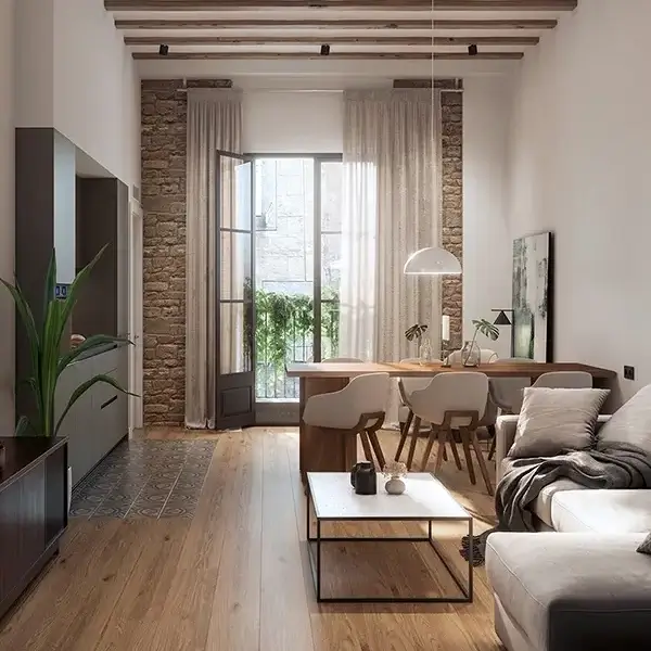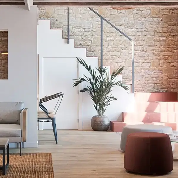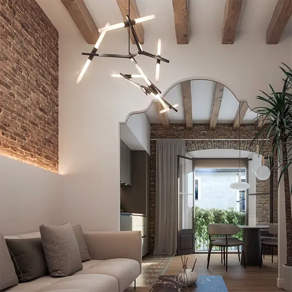 En el interior artesanos locales han dado vida a sus elementos originales, incluyendo el impresionante vestíbulo, los altos techos con bovedillas catalanas y vigas de madera vistas, muros de piedra y suelos con mosaicos hidráulicos clásicos de Barcelona.